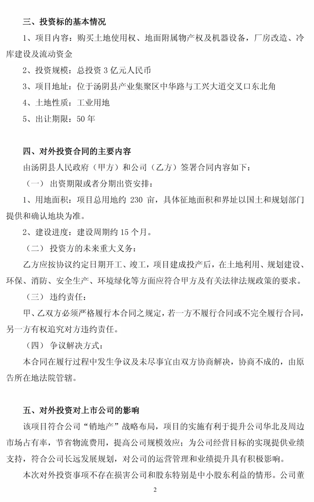 項(xiàng)目占地約230畝,地址位于河南省湯陰縣境內(nèi),具體面積和界址以國土和規(guī)劃部門提供和確認(rèn)地塊為準(zhǔn)。公告中表示,公司將在湯陰縣境內(nèi)注冊(cè)成立子公司并依法納稅,以達(dá)到互惠互利,共同發(fā)展的目標(biāo)。