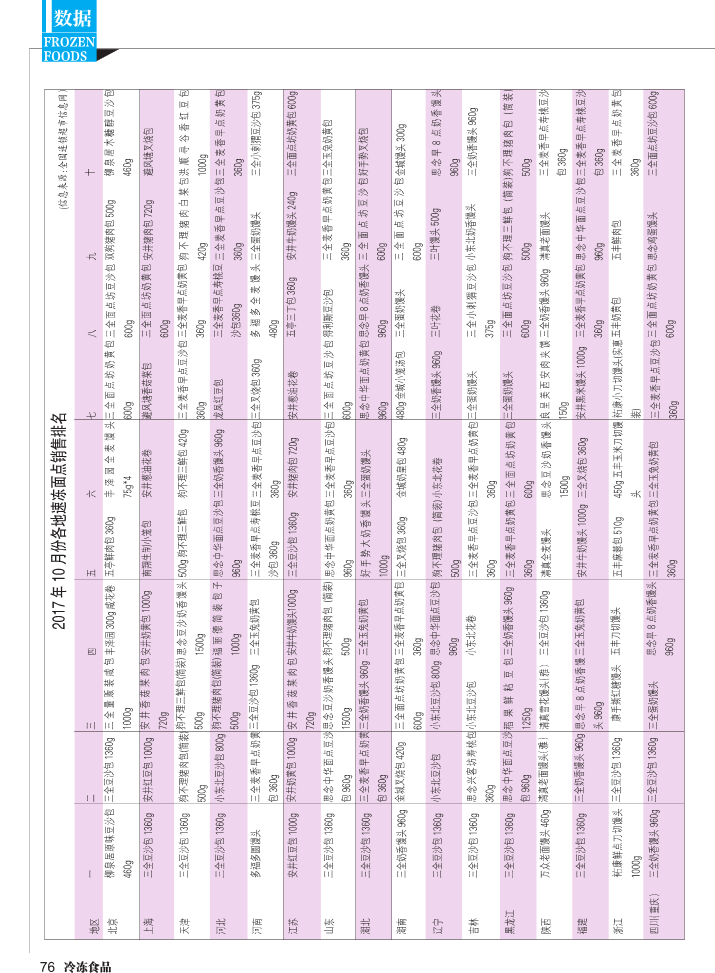 來源: 冷凍食品網 發(fā)布者:編輯▼2017年11月份各地速凍面點銷售排名