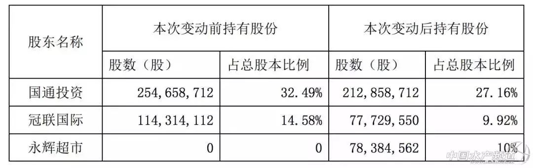 3月23日下午,湛江國聯水產開發股份有限公司(國聯水產)發布“關于控股股東及主要股東協議轉讓部分股份的提示性公告”,控股股東向永輝超市轉讓10%股份。